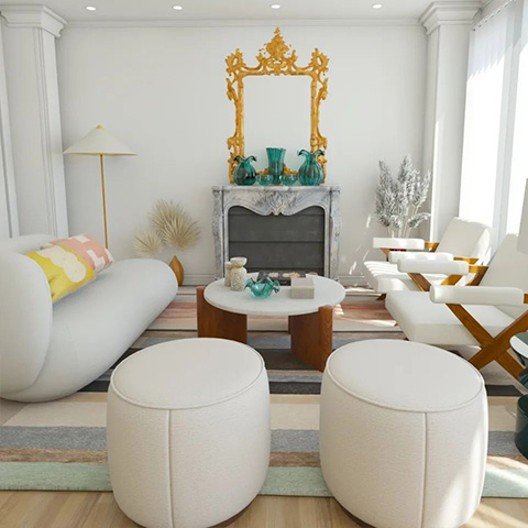 Rénovation entière d'un appartement avec terrasse. Le client voulait intégrer la couleur et donner un air plus moderne à son appartement. Une cuisine ouverte, pas d'île et un salon très coloré ont été les demandes du client, qui a finalement trouvé son bonheur. Pour cette rénovation, on a tenu en compte la revalorisation d'espaces et de matériaux pour une démarche plus écologique.  Des matériaux innovants et des éléments décoratifs issus des savoir-faire français font de cet appartement un lieu unique avec beaucoup d'histoires à raconter aux curieux. « La touche de couleur très originale sur le plan travail a été mon coup de cœur » Emily B.